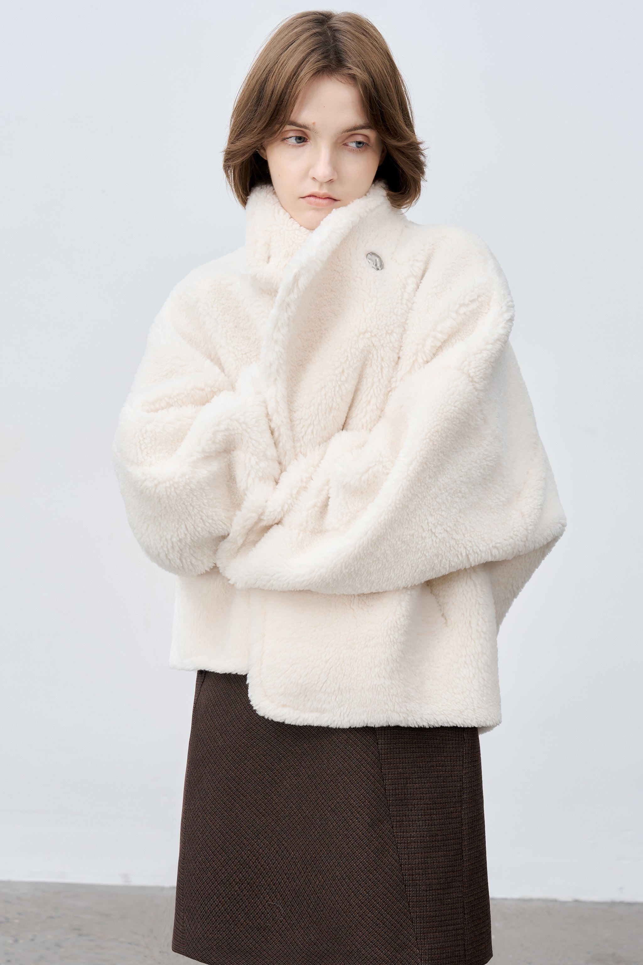 Draped Texture Wool Turtleneck Long Sleeve Top