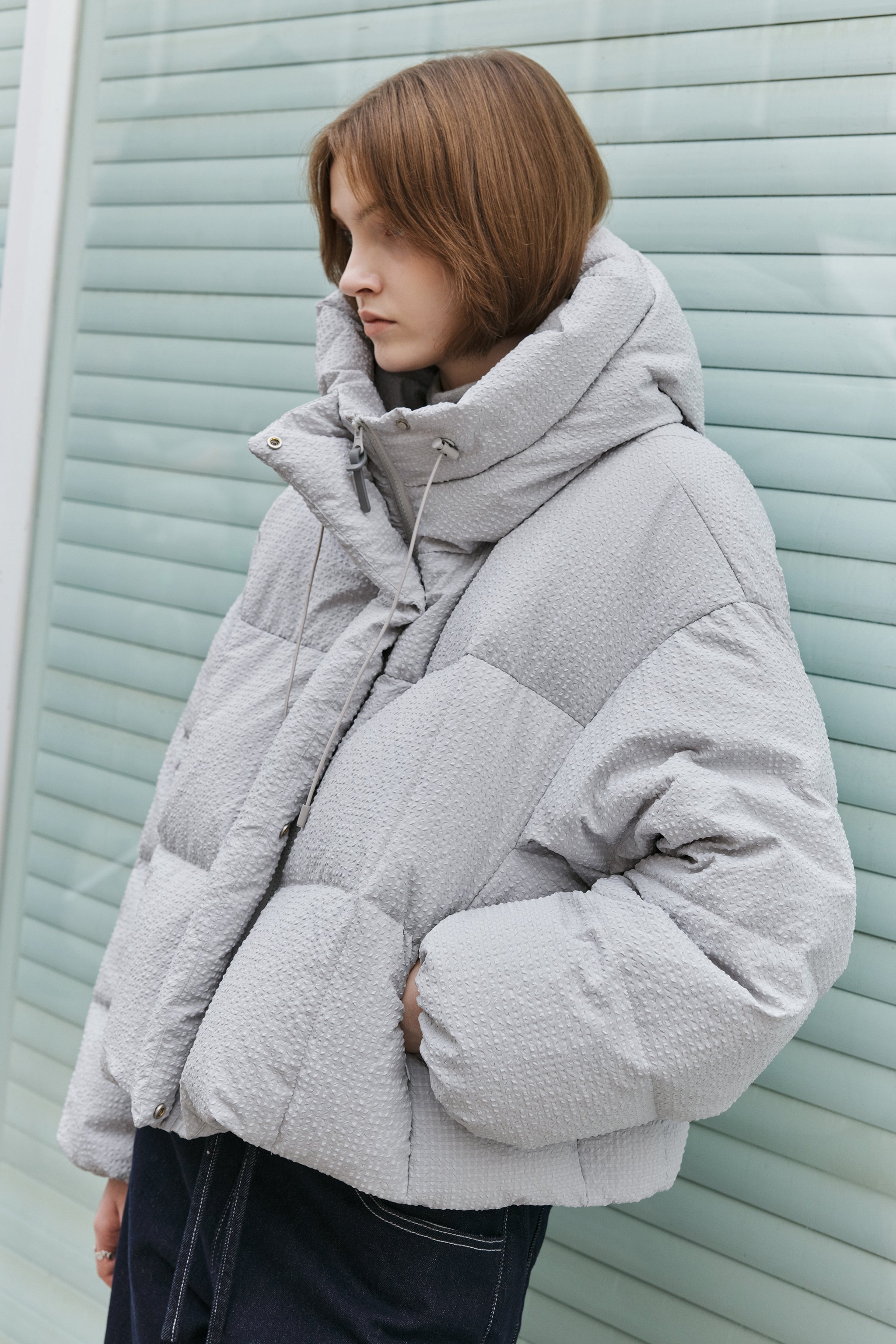 Mid-Length Stand Collar Hooded Oversize Down Coat