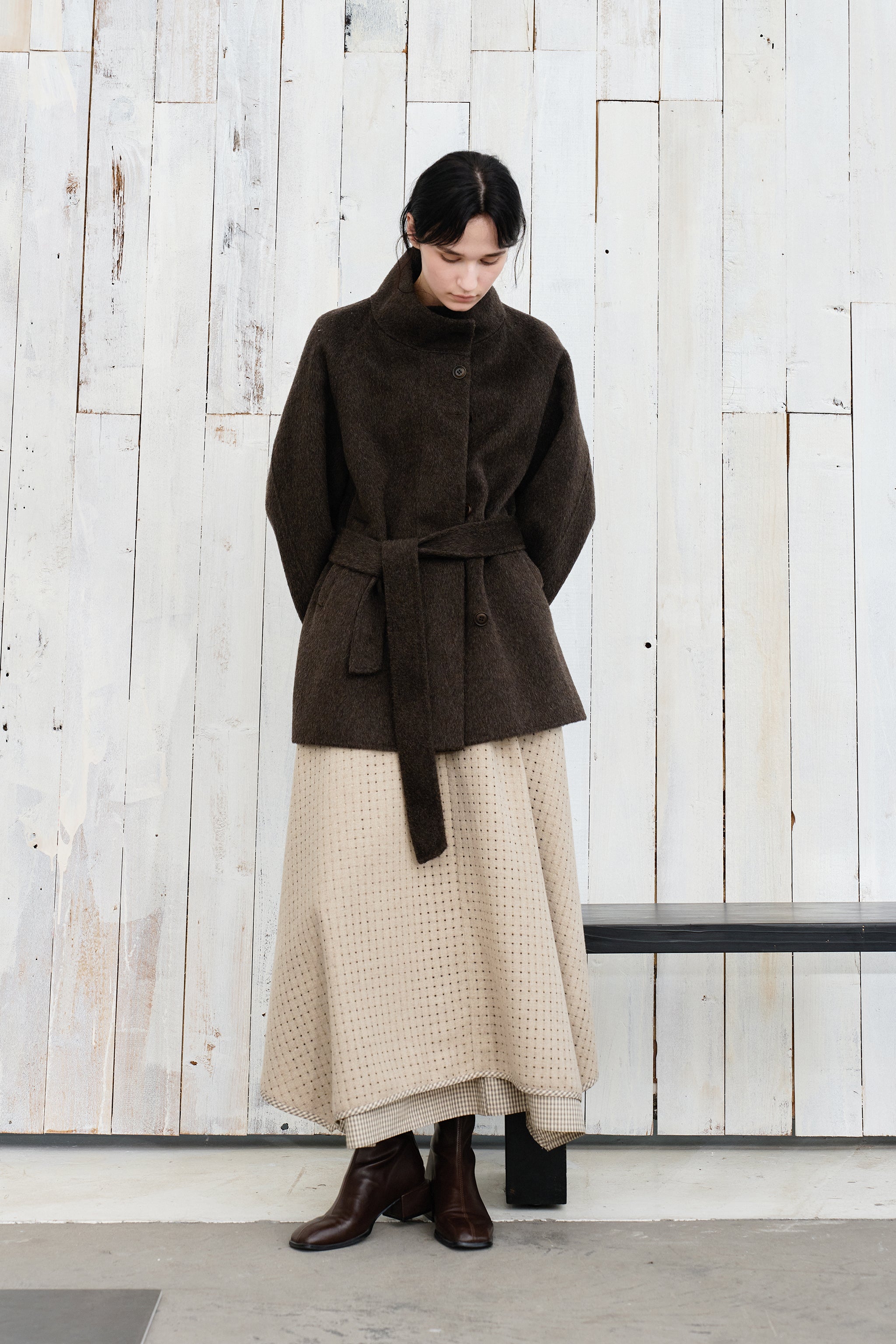 Wool Twill Skirt with Gathered Detail & Bubble Silhouette