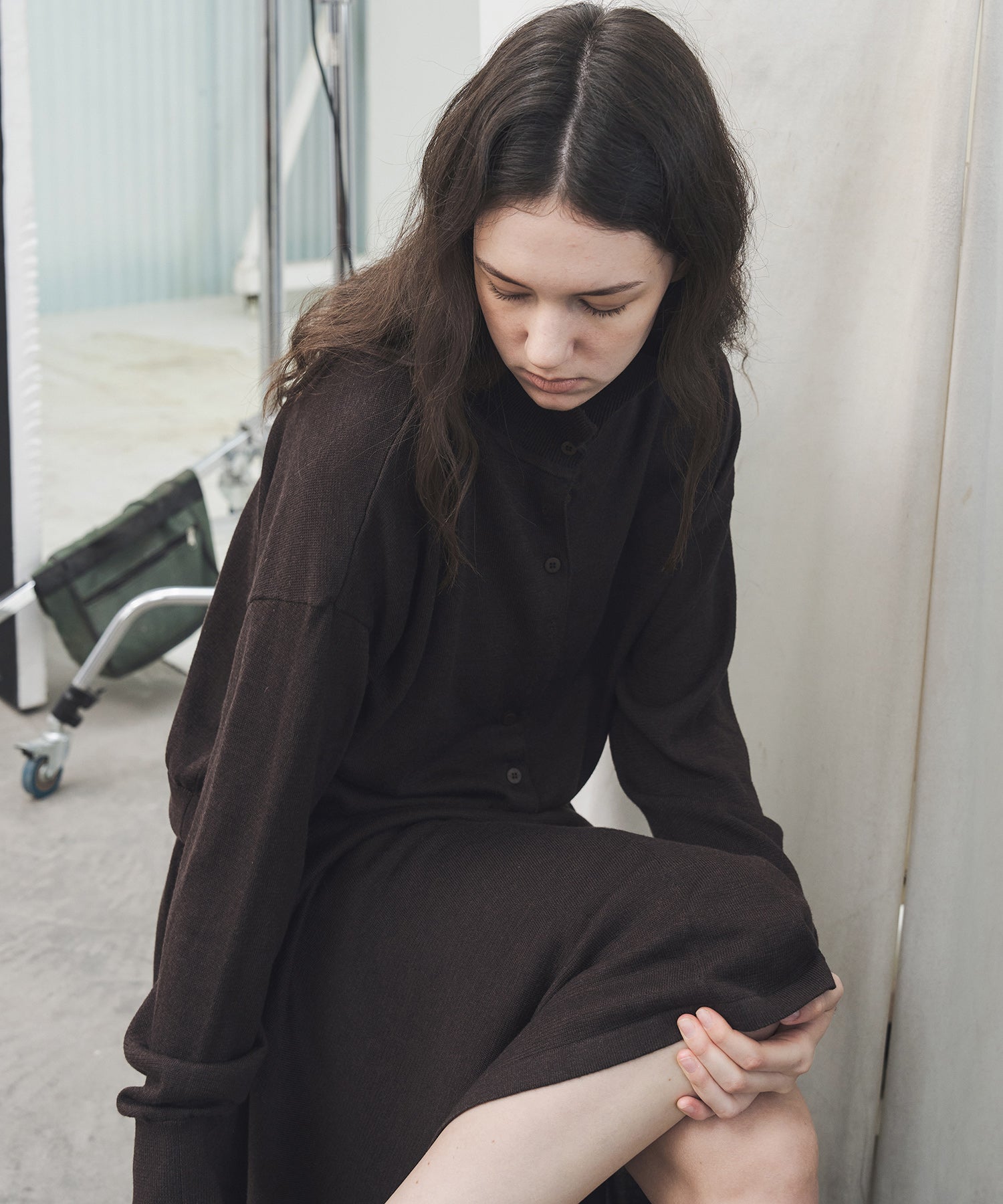 This lightweight knit cardigan changes its look depending on the collar. The lightweight knit material makes it perfect for transitioning between seasons. Buttoning it all up allows it to be worn as a high neck, adding just the right amount of volume to the neck. Wear it open for a relaxed look, or button it down for a more refined impression. The simple design allows you to change the nuance of the look depending on how you wear it. It pairs easily with both pants and skirts, making it an item that will add a subtle change to your everyday life.