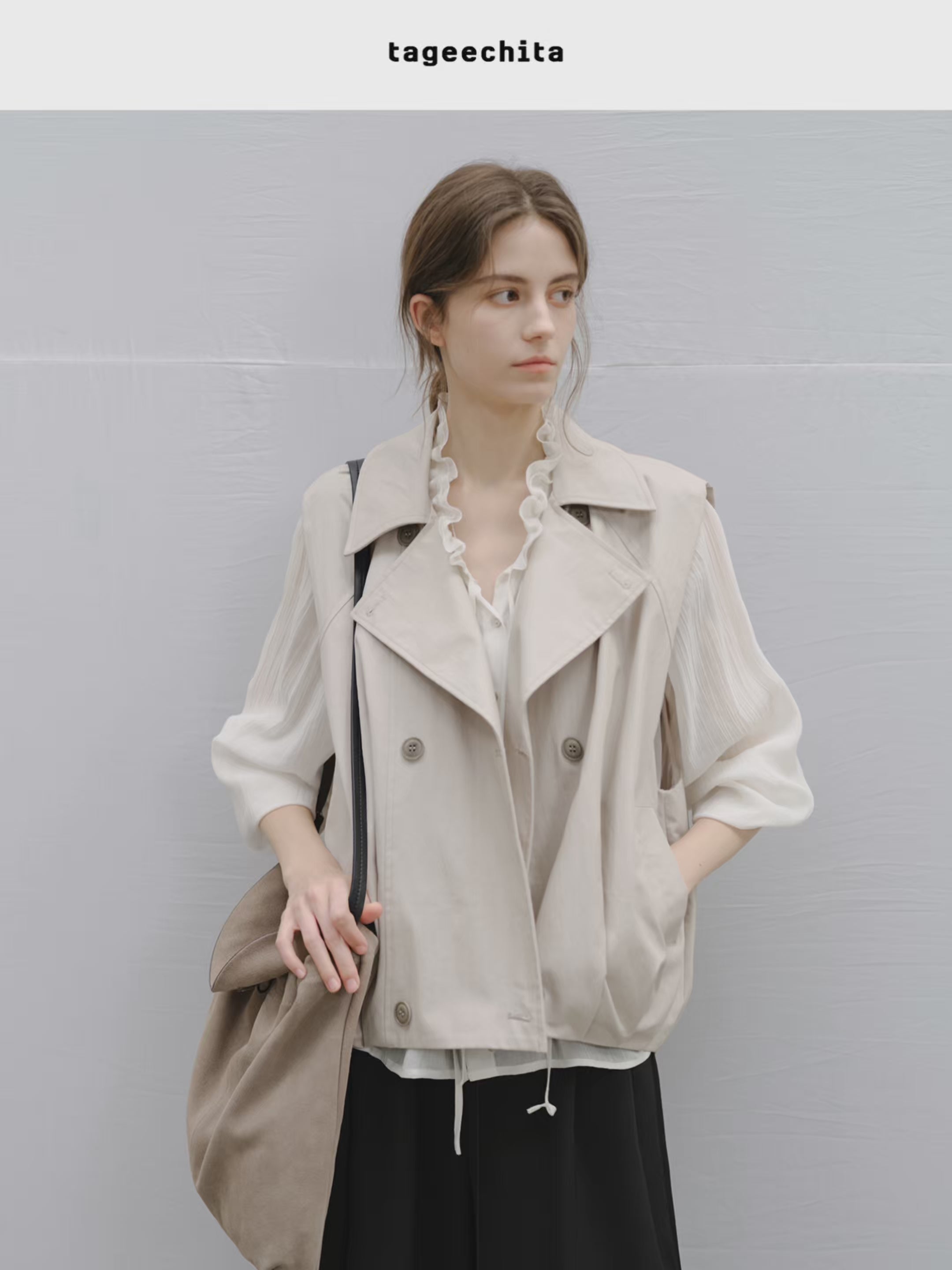 "Shipping scheduled for late February to early March" Lapel Collar Double-Breasted Vest