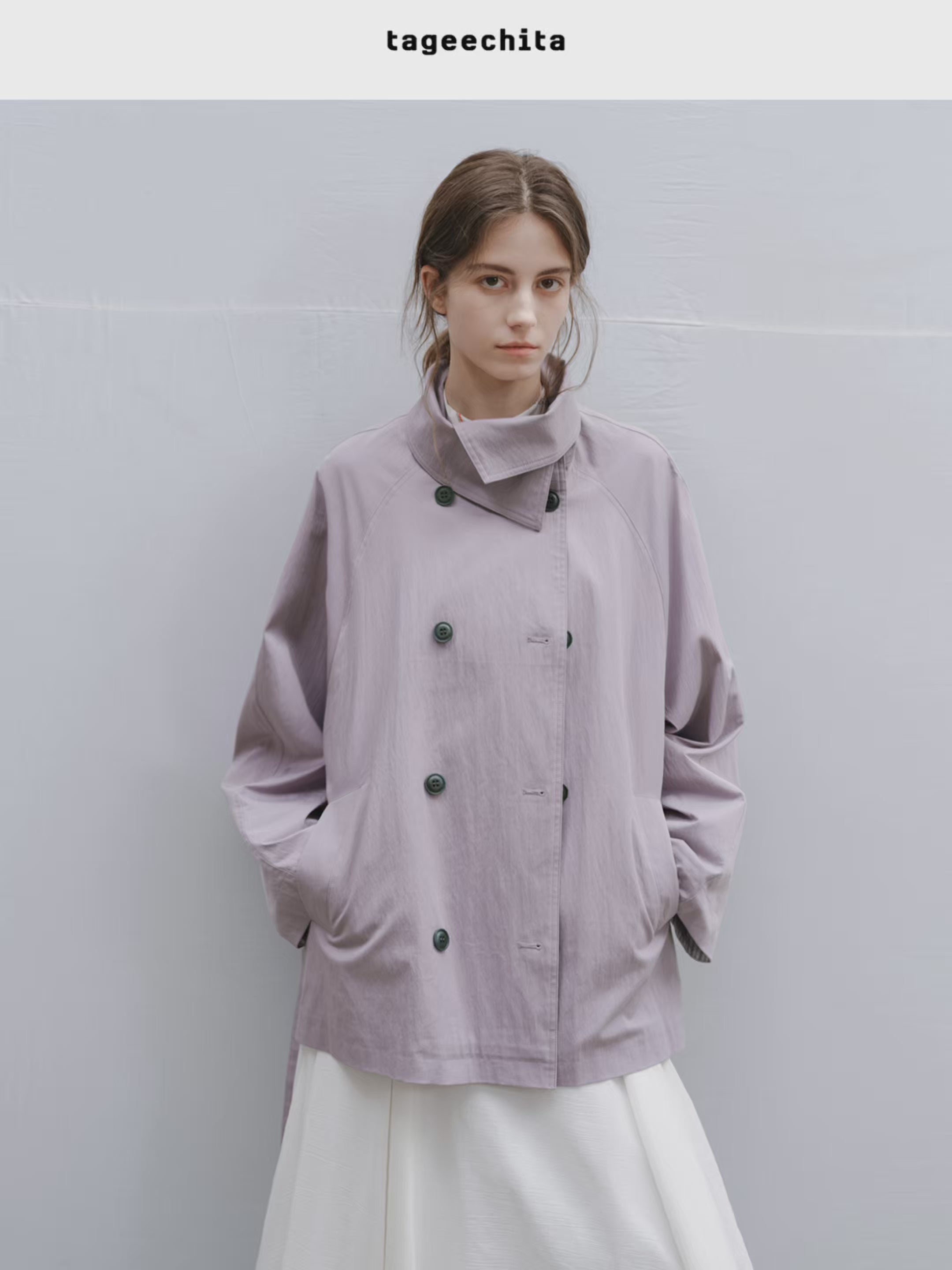 ■ラップカラー ベルト付き ショートトレンチコート